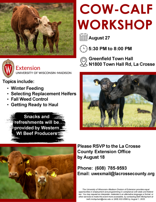 Please register by August 18th by contacting the La Crosse County Extension 608-785-9593